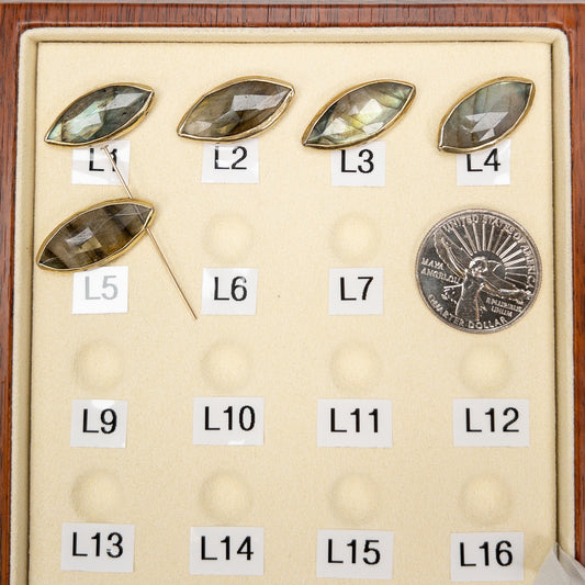 Labradorite Faceted Marquis Briolette with Gold Bezel Bead - 1 pc. (P1726)