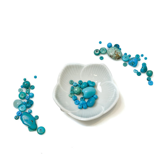 My mom is a December baby and a true hippie of the 70's — I grew up watching her wearing turquoise rings and necklaces, and playing dress up with those stones, and that's where my love of this stone began.