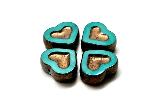 14x12mm Heart within a Heart Turquoise Czech Opaque Glass Beads - 6 pcs.