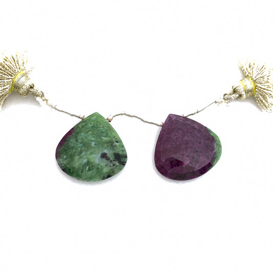Matched Ruby in Zoisite Faceted Briolettes (22mm) - Pair (P2992)