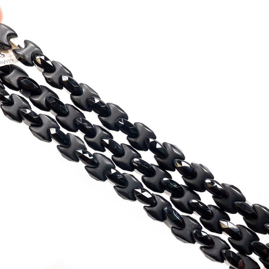 Black Agate 10x10mm Half-Matte Bowtie - 7.75" Strand