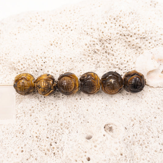 Tiger Eye 10mm Carved Longevity Round Bead - (1 pc / P2294)