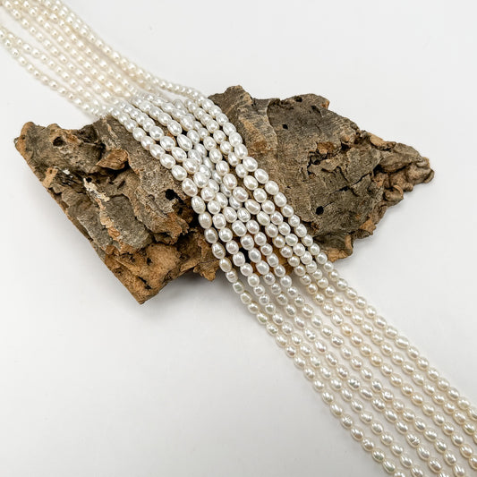 Freshwater Pearl 5.75mm White Rice Bead - 7.75" Strand (GEM2207)