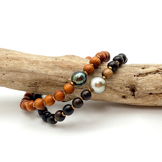 Mauka to Makai: Bayong Wood & Tahitian Pearl Stretchy Cord Bracelet Kit (KT132)