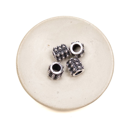 Studded Large Hole Bead (Silver Plated White Bronze) - 1 pc.