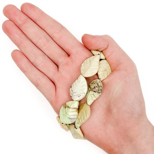 Lemon Chrysoprase 18x25mm Carved Leaf Bead - 7.75" Strand