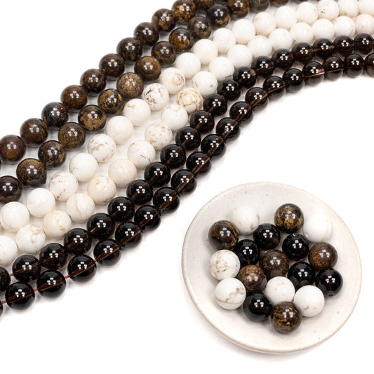 Earth Gems Bead Mix: Bronzite, Magnesite & Smoky Quartz - 18 pcs. (KT611)