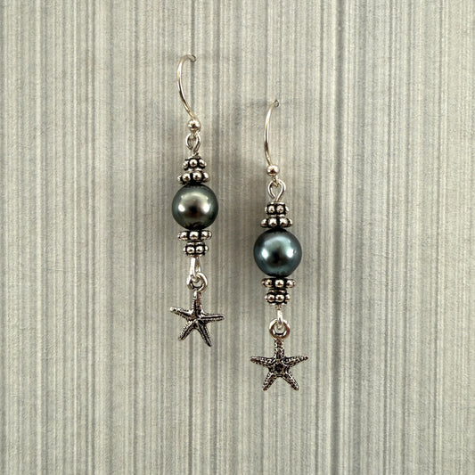 Tahitian Pearl with Sterling Silver Lotus Finished Earrings - 1 pair (J218)