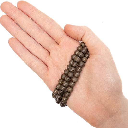 Gray Wood 8mm Polished Finish Round Bead - 16" Strand (GEM2176)