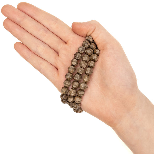 Gray Wood 8mm Hand-Faceted Round Bead - 7.5" Strand (GEM799)
