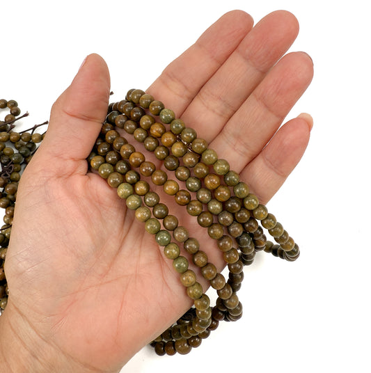 Green Verawood 6mm Smooth Round Bead - 26" Strand (GEM2308)